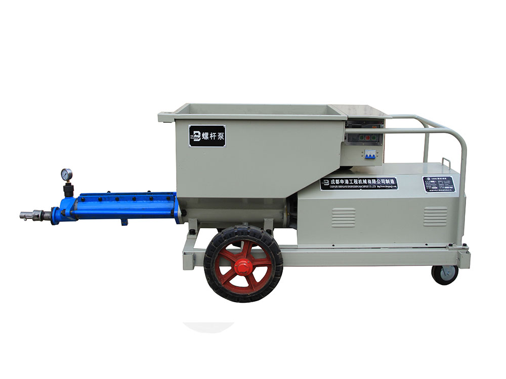 該泵結構新穎、構思獨特;避免了灌注稠漿較困難的不足,使用安全方便、效率高。本機主要由電動機、減速器、輸漿體、增壓蝸桿、增壓定子、測壓、料斗、電控系統等組成,當用于噴護時,還包括噴射器,其特點如下: