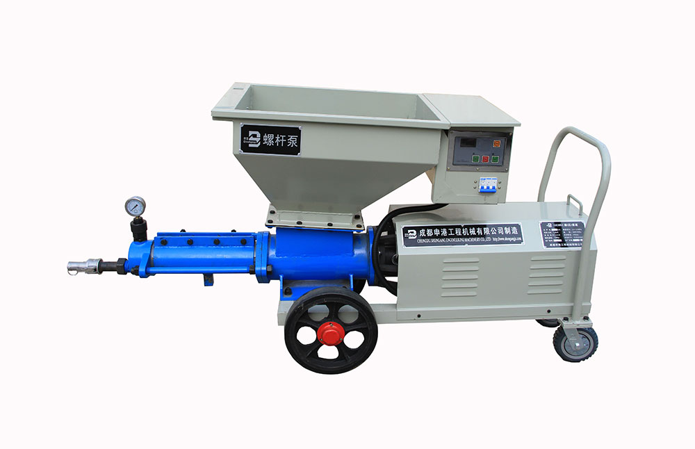 該泵結構新穎、構思獨特;避免了灌注稠漿較困難的不足,使用安全方便、效率高。本機主要由電動機、減速器、輸漿體、增壓蝸桿、增壓定子、測壓 儀、料斗(或進料接盤),當用于噴護時,還包括噴射器,其特點如下: